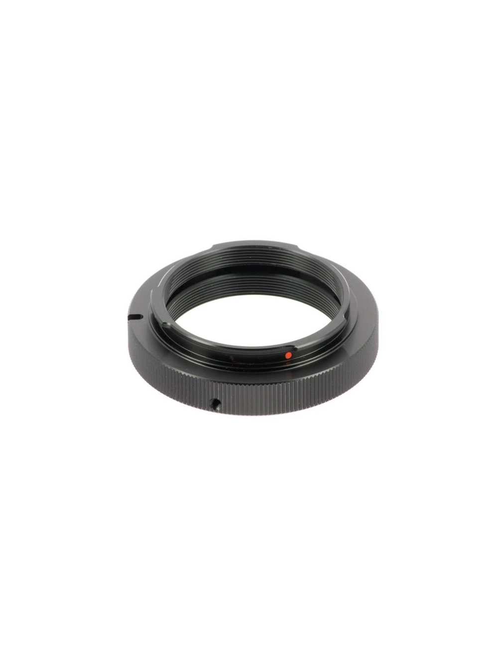 La bague T est un accessoire indispensable pour qui veut fixer un appareil photo numérique sur le tube optique d’un télescope ou d’une lunette astronomique. Spécifique à la marque de l’appareil, la bague T assure la jonction entre le boîtier et l’adaptateur photo de l’instrument. Chaque bague a une longueur particulière qui assure une distance fixe de 56,2 mm entre le capteur de l’appareil photo et la face d’appui de l’adaptateur photo de l’instrument.