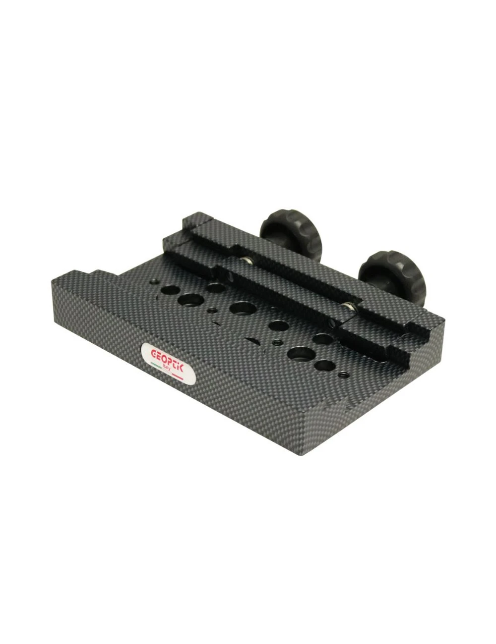 Platine avec double queue d’aronde femelle. Elle est compatible avec de nombreuses montures comme Sky-Watcher, Orion Atlas au moyen de brides, Takahashi, Losmandy GM8, G11. Version look Carbone.