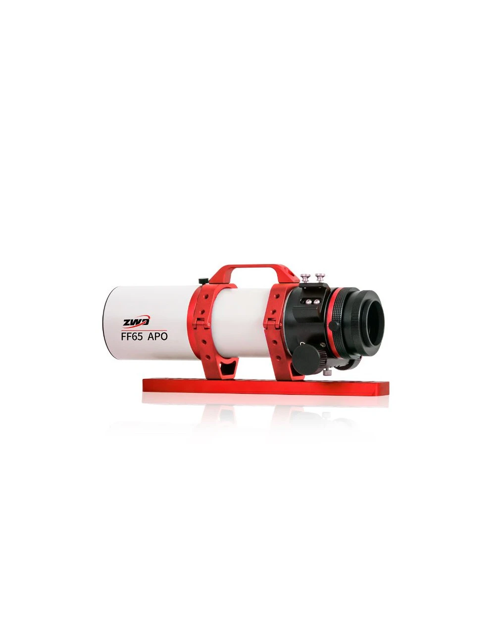 La lunette ZWO FF65 est un astrographe destiné à l’imagerie astronomique du ciel profond à grand champ. Son système optique est constitué d’un quintuplet (5 lentilles) dont un correcteur de champ offrant un cercle image corrigé de 44 mm de diamètre couvrant les capteurs plein-format. La FF65 est équipée pour l’imagerie avec son système de mise au point surdimensionné (2,5″) avec démultiplication, facilement motorisable, et ses nombreux adaptateurs photo. Son principal atout est la facilité de montage des caméras et des appareils photographiques au foyer. Il n’est pas nécessaire de se préoccuper du backfocus ; vissez vos accessoires et c’est tout !