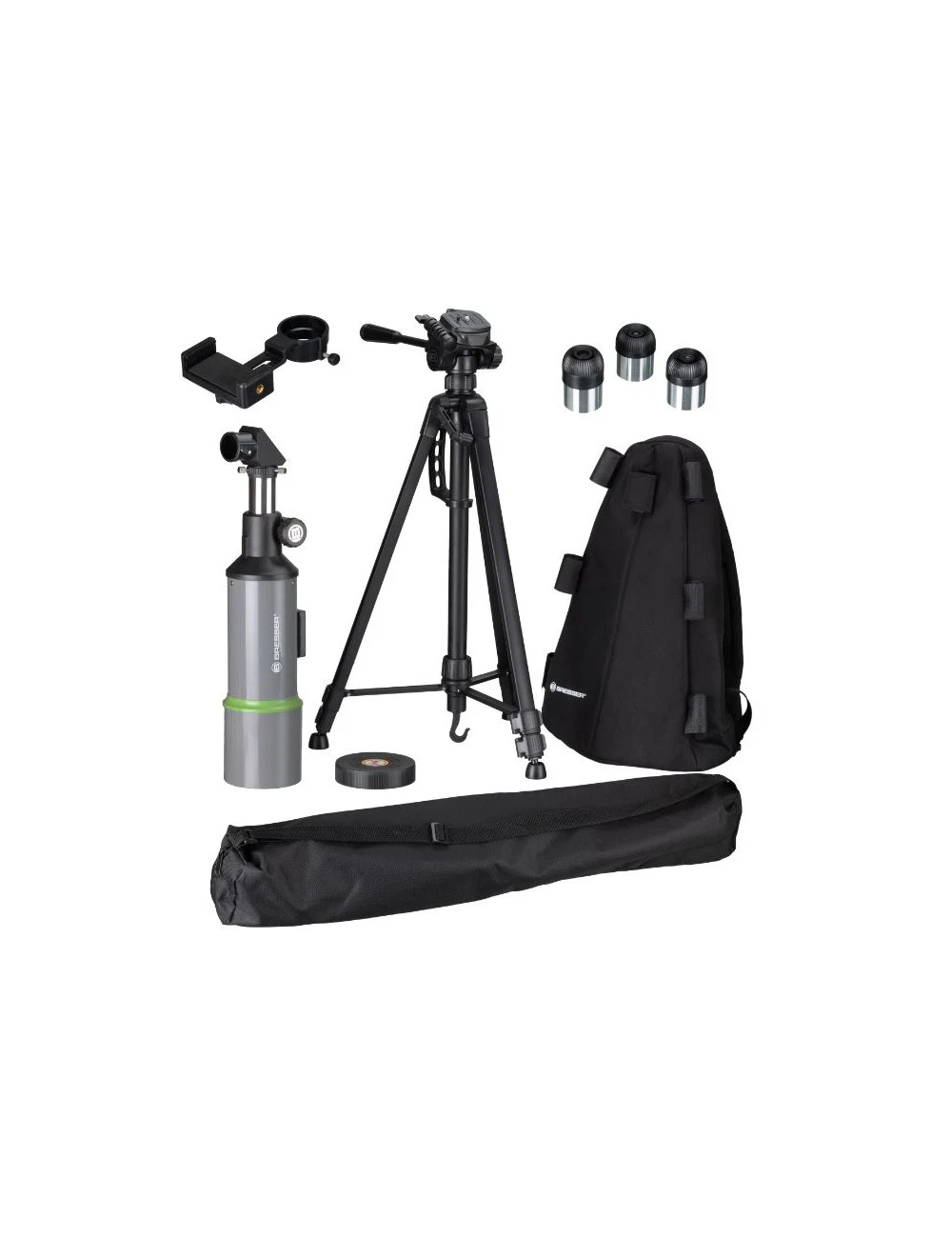 Idéal pour les observateurs du ciel qui aiment voyager : une lunette compacte, un trépied, un sac à dos, 3 oculaires et un adaptateur smartphone.