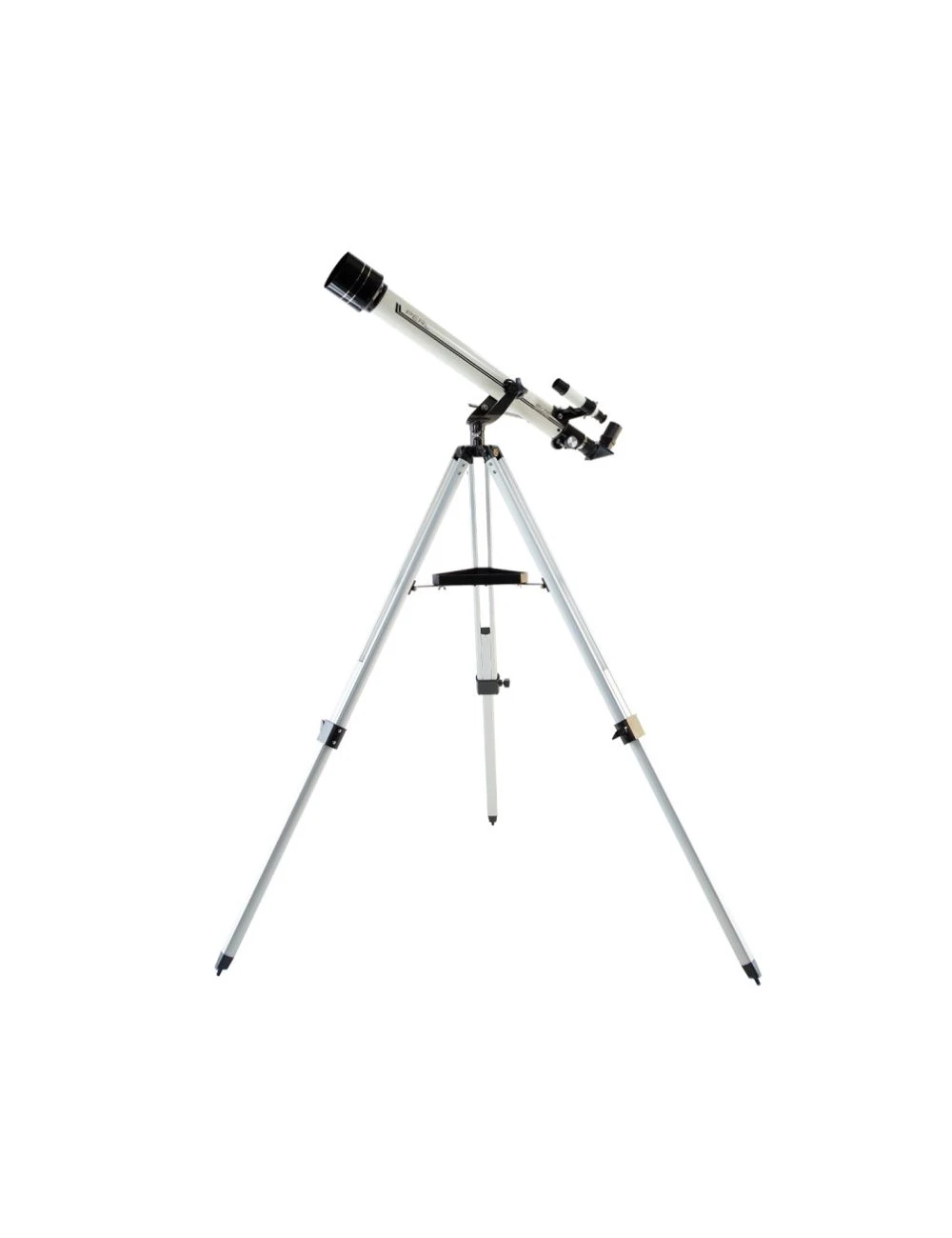 Objectif achromatique traité anti-reflet – Diamètre : 60 mm – Focale : 700 mm (F/D=11,6) – Monture altazimutale – Trépied aluminium réglable en hauteur – Mouvement micrométrique en hauteur – Résolution : 2 sec. d’arc (Oeil nu= 60 sec. d’arc) – Magnitude stellaire limite 11 (Oeil nu= 6) – Clarté : 100x (Oeil nu= 1) – Grossissements utiles : 8x à 144x.