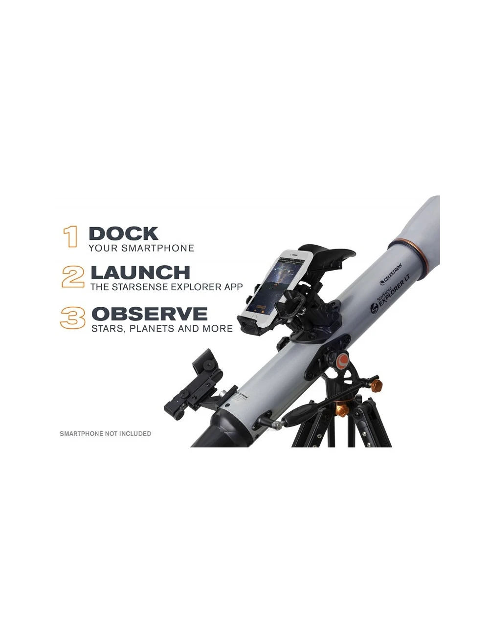 StarSense Explorer fonctionne avec la plupart des Smartphone actuels, à partir de l’iPhone 6 et pour la plupart des appareils fonctionnant sous Android 7.1.2 ou version ultérieure à 2016.