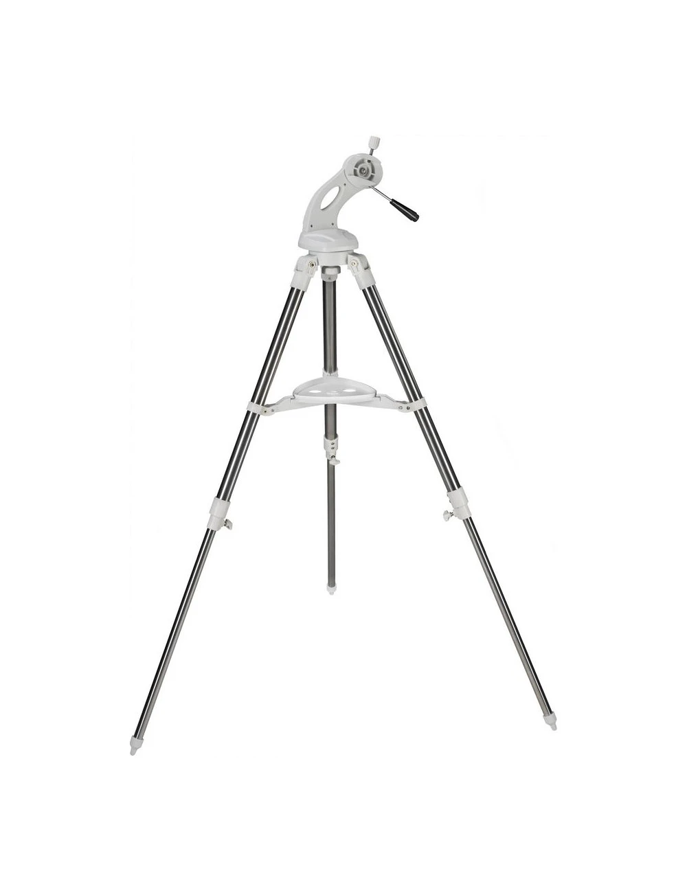 Le maintien sécurisé de l’instrument est assuré par un dispositif de serrage standardisé 44 mm (standard Vixen/Synta/CG5). Le trépied en acier inoxydable stable et réglable en hauteur fourni dans le kit constitue la base idéale pour la monture BRESSER NANO AZ.