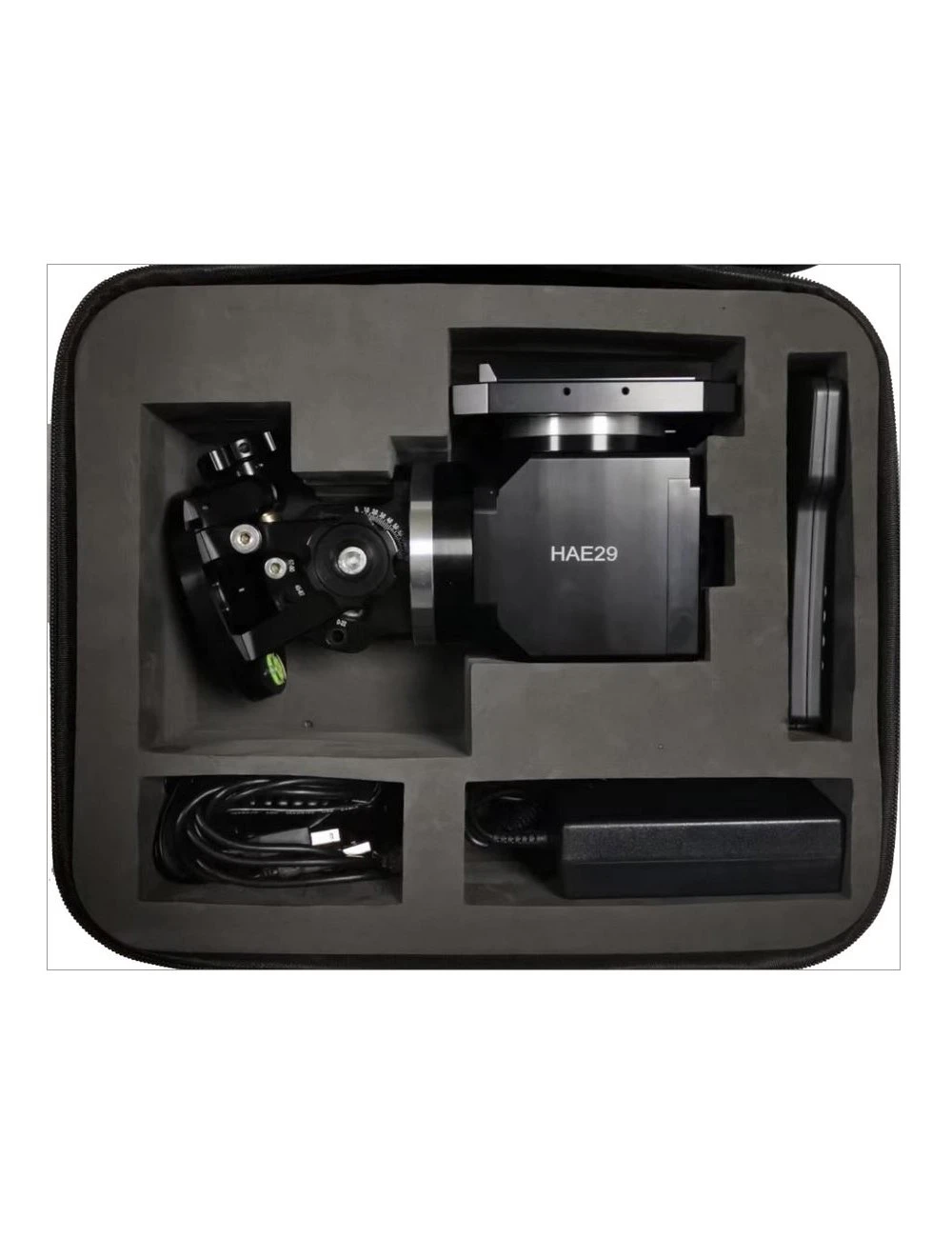 IOptron présente avec l’HAE29 sa nouvelle génération de montures harmoniques pouvant fonctionner soit en mode équatorial soit en mode alt-azimutal. Cette gamme est destinée à un usage nomade pour une utilisation aussi bien visuelle qu’à des fins d’imagerie. Elle se distingue de suite par son petit format, sa légèreté (3,7 kg) au regard de sa capacité de charge (13,5 kg) sans faire appel à un contrepoids. Le format d’accueil du matériel supporté est double : Vixen/Synta et Losmandy/CGE. Cette prouesse est possible grâce à l’utilisation de réducteurs elliptiques et de courroies synchrones (engrenage à onde de déformation). Cette technologie est directement importée avec succès du monde de la robotique et de l’aviation. La raquette de commande iOptron Go2Nova, ergonomique et facile à appréhender est livrée dans la configuration de base mais la plupart des astronomes amateurs préféreront également un contrôle direct en ASCOM (en utilisant le logiciel iOptron Commander) dans le cas d’une connexion PC/Windows, via INDI pour MacOS, ou encore avec un Smartphone ou une tablette (avec iOptron Commander Lite ou une appli comme SkySafari) ou encore un Rasberry Pi. Comme toutes les autres montures iOptron, les moteurs sont silencieux et consomment peu. Cette monture est livrée sans trépied ; iOptron propose donc ses nouveaux trépieds 21″ en fibre de carbone, stables, légers, rigides ou le traditionnel LiteRoc. Base de données de plus de 212 000 objets et Wi-Fi intégrés. Il s’agit de la version « classique » HAE29 avec viseur polaire optique pour une mise en station rapide sur le pôle céleste, concurrente directe de la ZWO AM5.