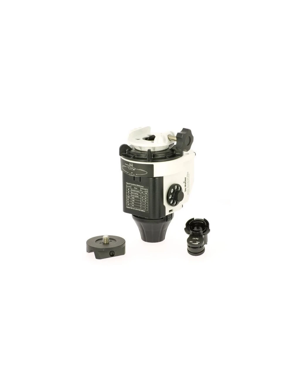 La base équatoriale permet un réglage précis de la latitude et en azimut. Elle se fixe sur n’importe quel pied avec filetage mâle 3/8″ (ou avec l’adaptateur inclus pour filetage 1/4″). Elle pèse 500g et peut supporter 5kg (monture Star Adventurer + instrument principal). Une queue d’aronde femelle type Vixen permet d’accueillir la monture.