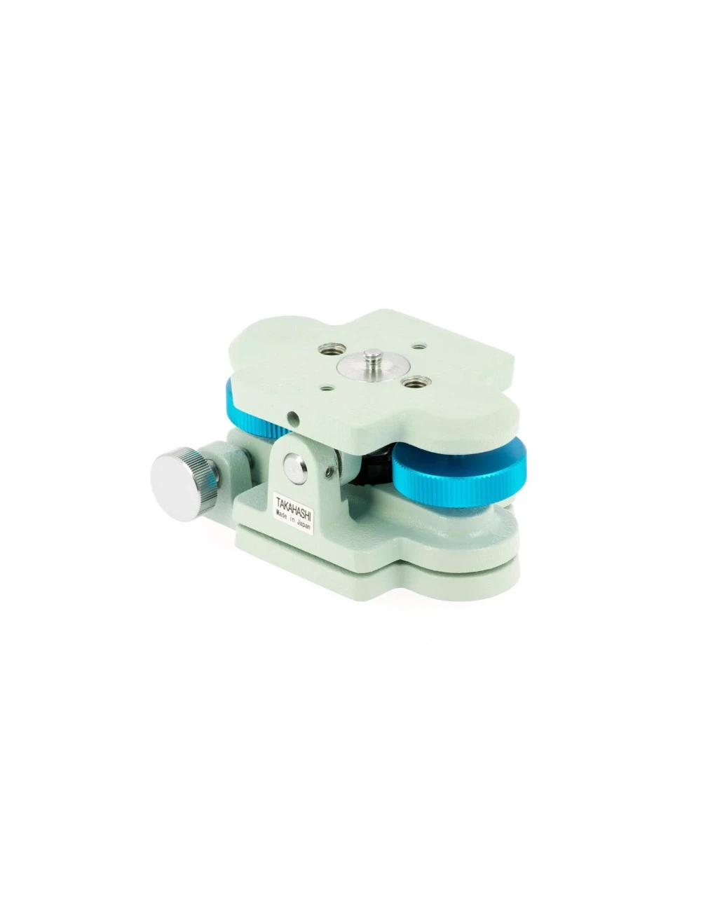 La platine de guidage AZ Takahashi dispose de 2 mouvements fins à double molettes, l’un pour le réglage de l’azimut, l’autre pour le réglage de l’inclinaison. La démultiplication est importante et les déplacements sont doux, rendant le pointage très précis. La plage de déplacement est de 10° en azimut et de 5° en hauteur.