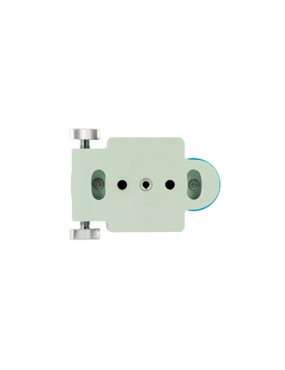 La face inférieure possède 2 taraudages M6, d’entraxe 35 mm, et un taraudage central au pas du Congrès (3/8″-16) avec un insert au format Kodak (1/4″-20). La face supérieure possède 2 taraudages M8, d’entraxe 35 mm, et un insert amovible avec une vis au pas Kodak (1/4″-20). Il est donc possible d’y visser directement le collier monobloc ou le collier symétrique d’un petit tube optique tel que celui de la FS-60CB, le support en L du guideur Takahashi GT-40 ou le support d’un chercheur de guidage.