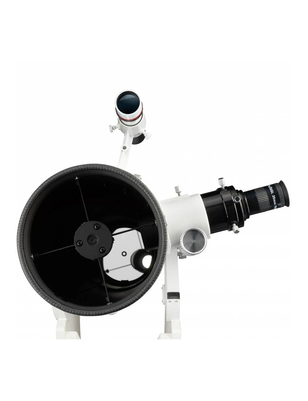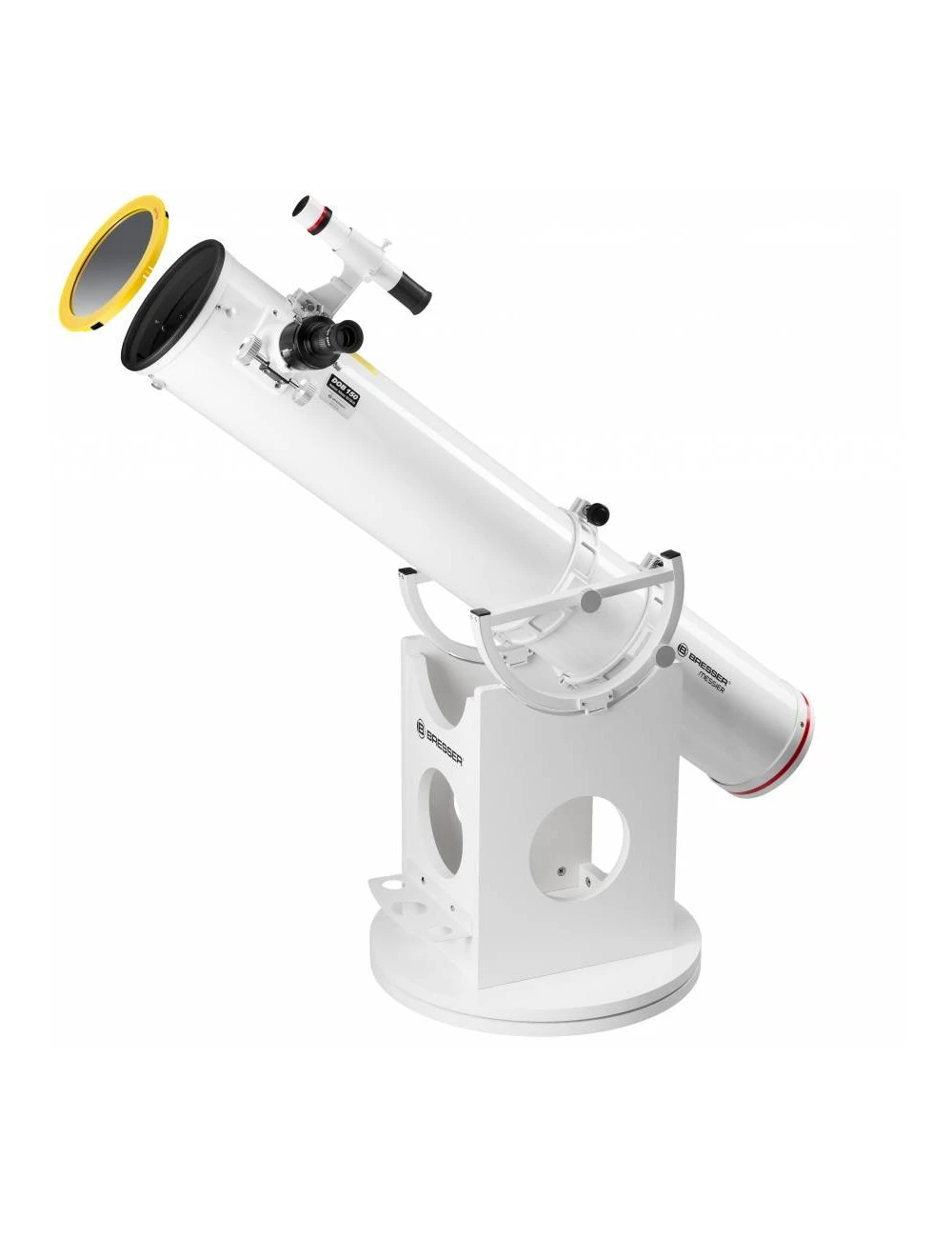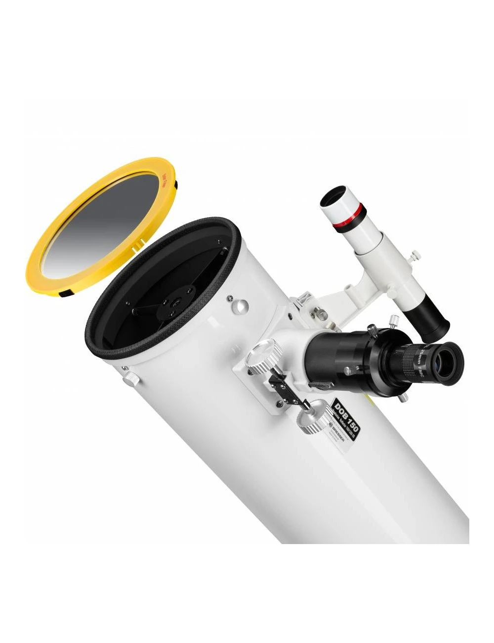 Dernier né dans la gamme des Dobson Messier chez Bresser, cet instrument à une place particulière. Malgré son diamètre restreint de 150mm, il est polyvalent et il se destinera aussi bien aux observations lunaires et planétaires que pour découvrir les objets les plus brillants du ciel profond. Livré avec un filtre solaire permettant l’observation de notre étoile en toute sécurité. Comme les autres Dobson de la marque, il peut être enlevé facilement de la base et se montra sans difficulté par la suite sur une monture équatoriale allemande adéquate.