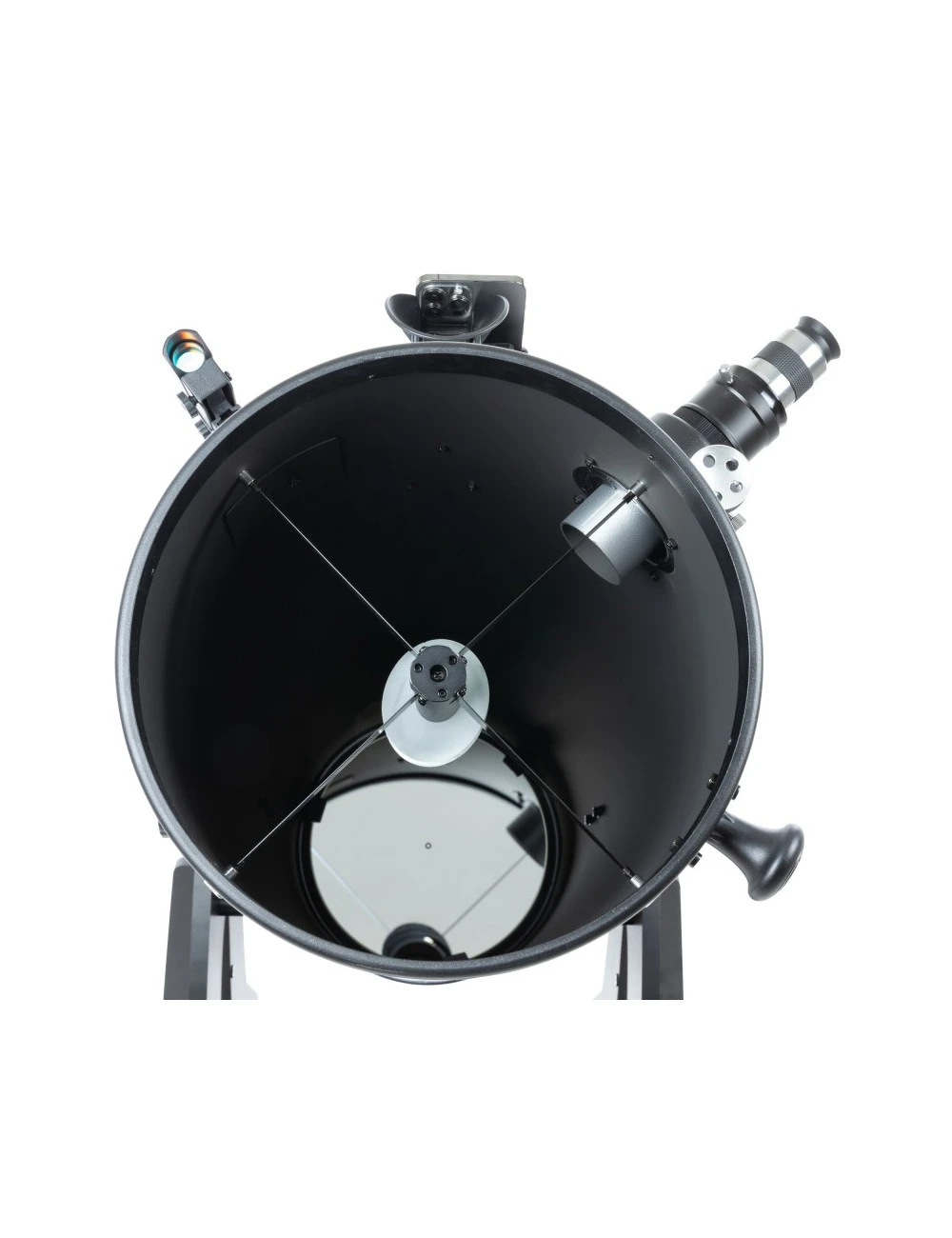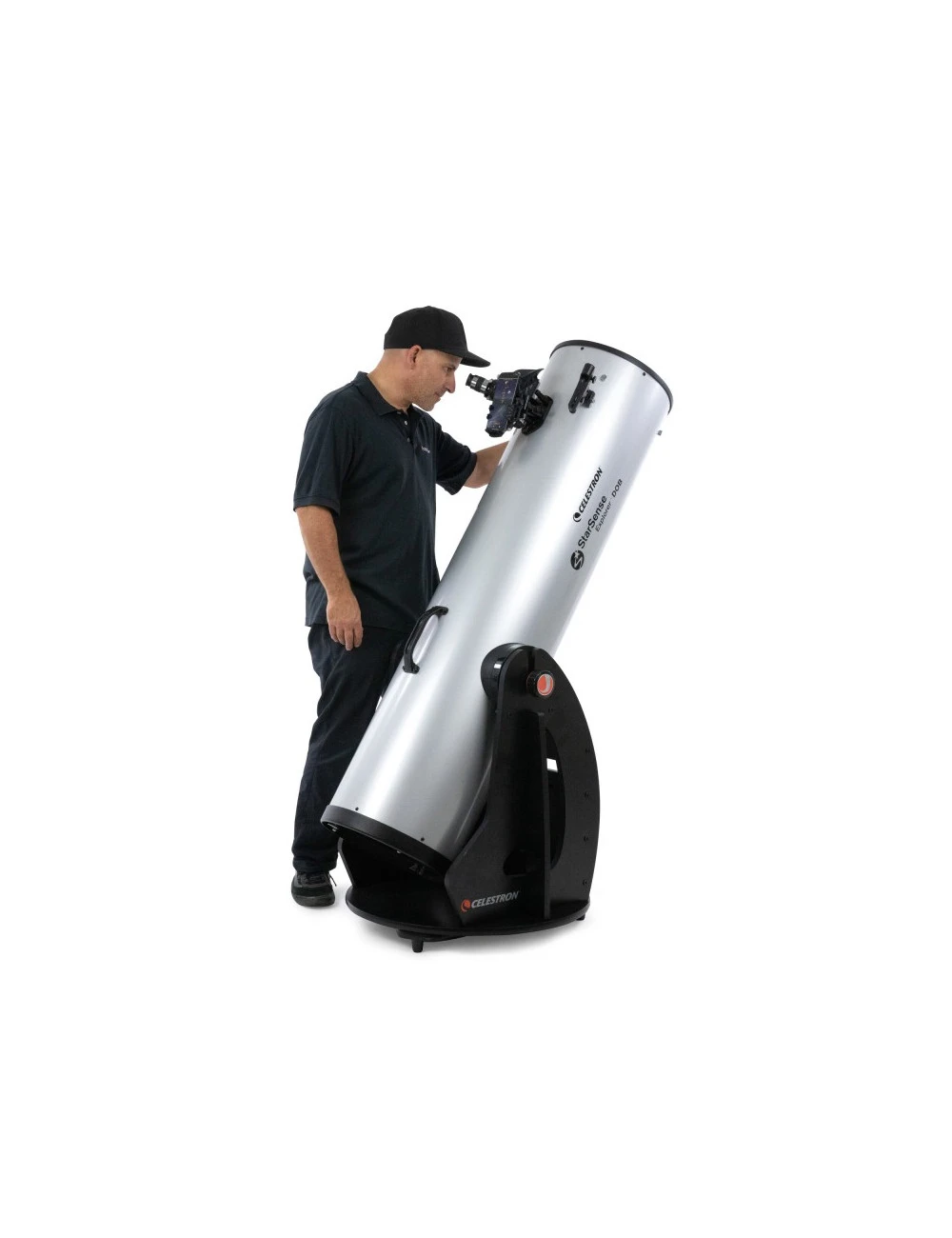 Télescope Dobson 305mm (12″) avec le système d’aide au pointage StarSense conçu par Celestron. Initialement développé avec succès pour des lunettes et télescopes d’initiation, le StarSense est dorénavant disponible sur les Dobson 8, 10 et 12″ de la célèbre marque pour le bonheur d’un plus grand nombre !