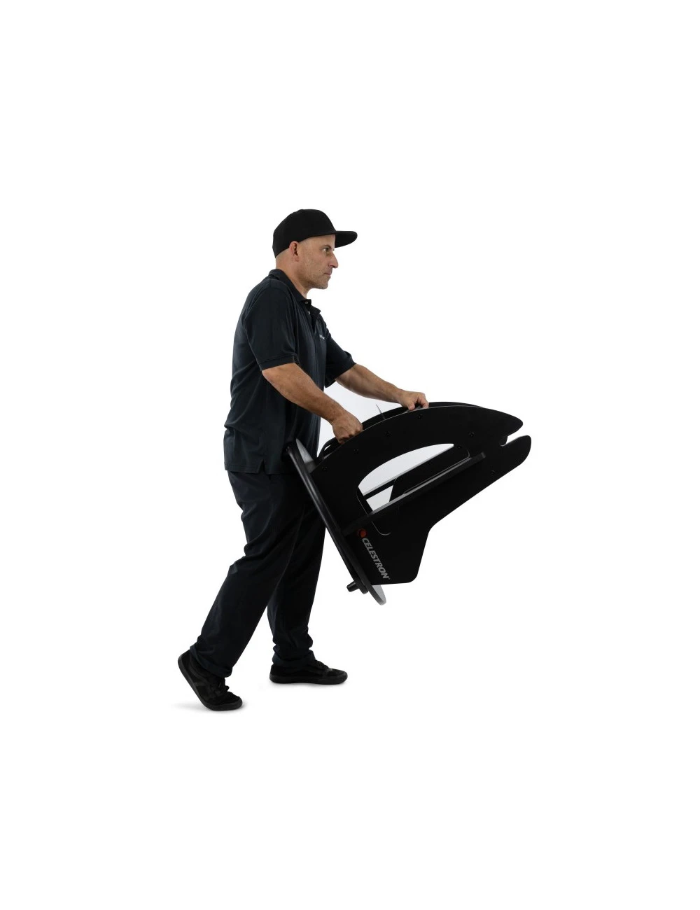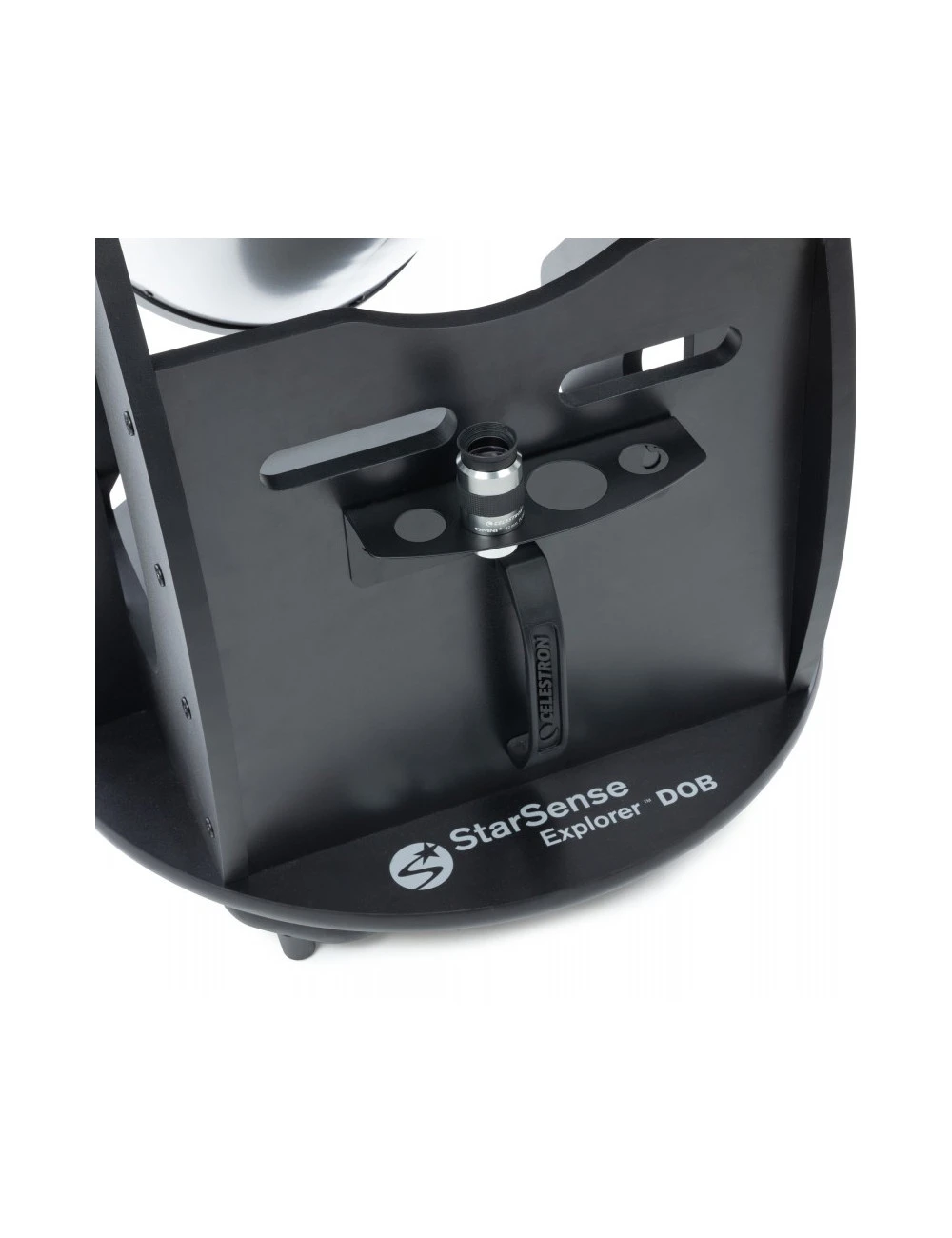 Le transport de votre Dobson StarSense Explorer est facile grâce aux poignées de transport ergonomiques situées au point d’équilibre du tube et de la base. Des caches anti-poussière sont également inclus pour l’avant du tube et le porte-oculaire.