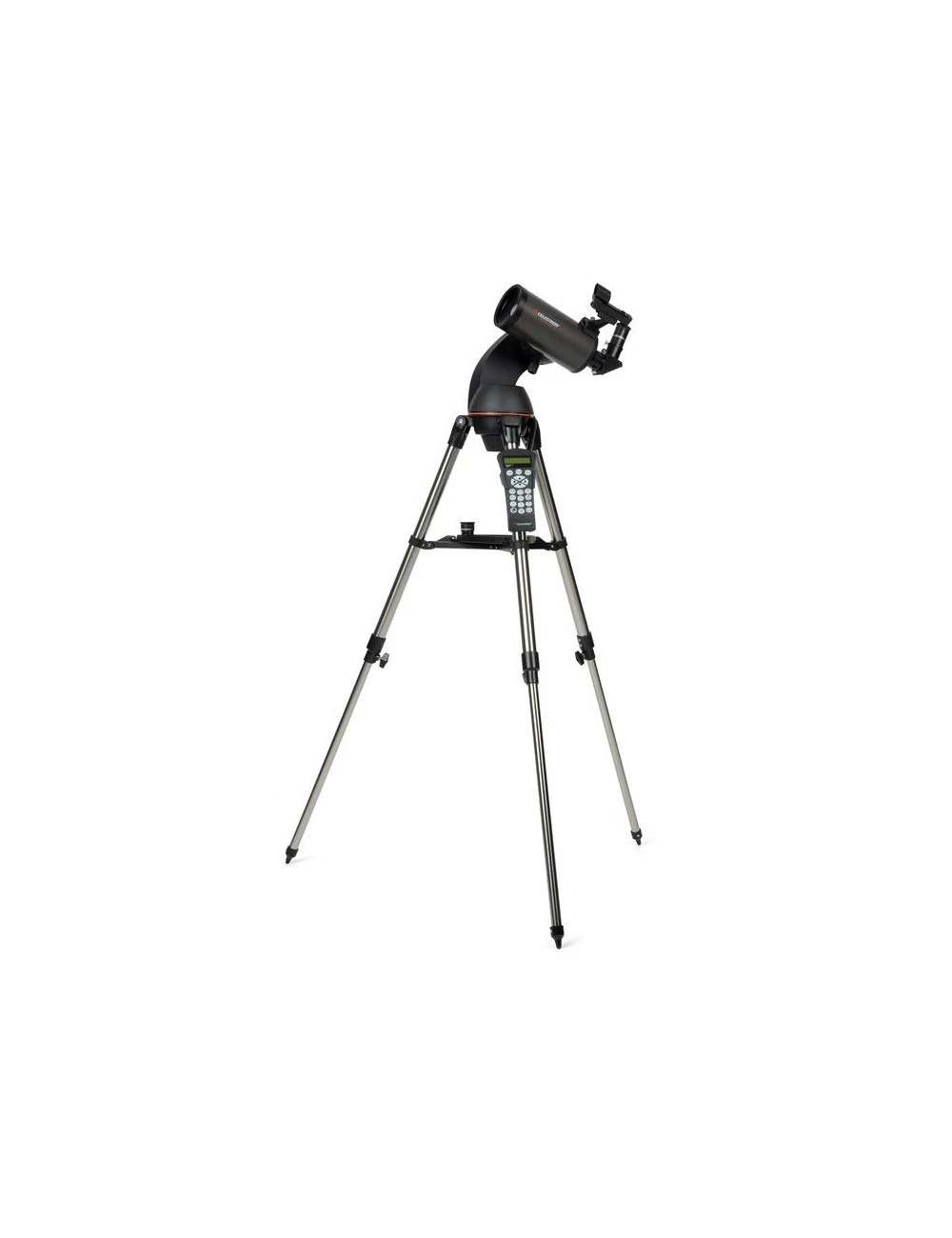 Télescope Maksutov-Cassegrain – Traitement optique antireflet – Diamètre : 90 mm – Focale: 1250 mm – Rapport F/D : 13.89 – Pouvoir séparateur : 1.3′ – Magniture stellaire limite : 12.3 – Clarté : 165x – Monture altazimutale – Motorisation double axe – Pointage automatique Go-To « SkyAlign » – Possibilité de mise à jour – Base de données 4 000 objets – Boîtier à piles intégré (8 piles AA-LR06 non livrées) – Trépied alu réglable en hauteur – Masse : 5,4 kg.