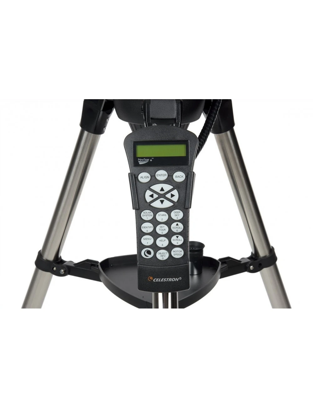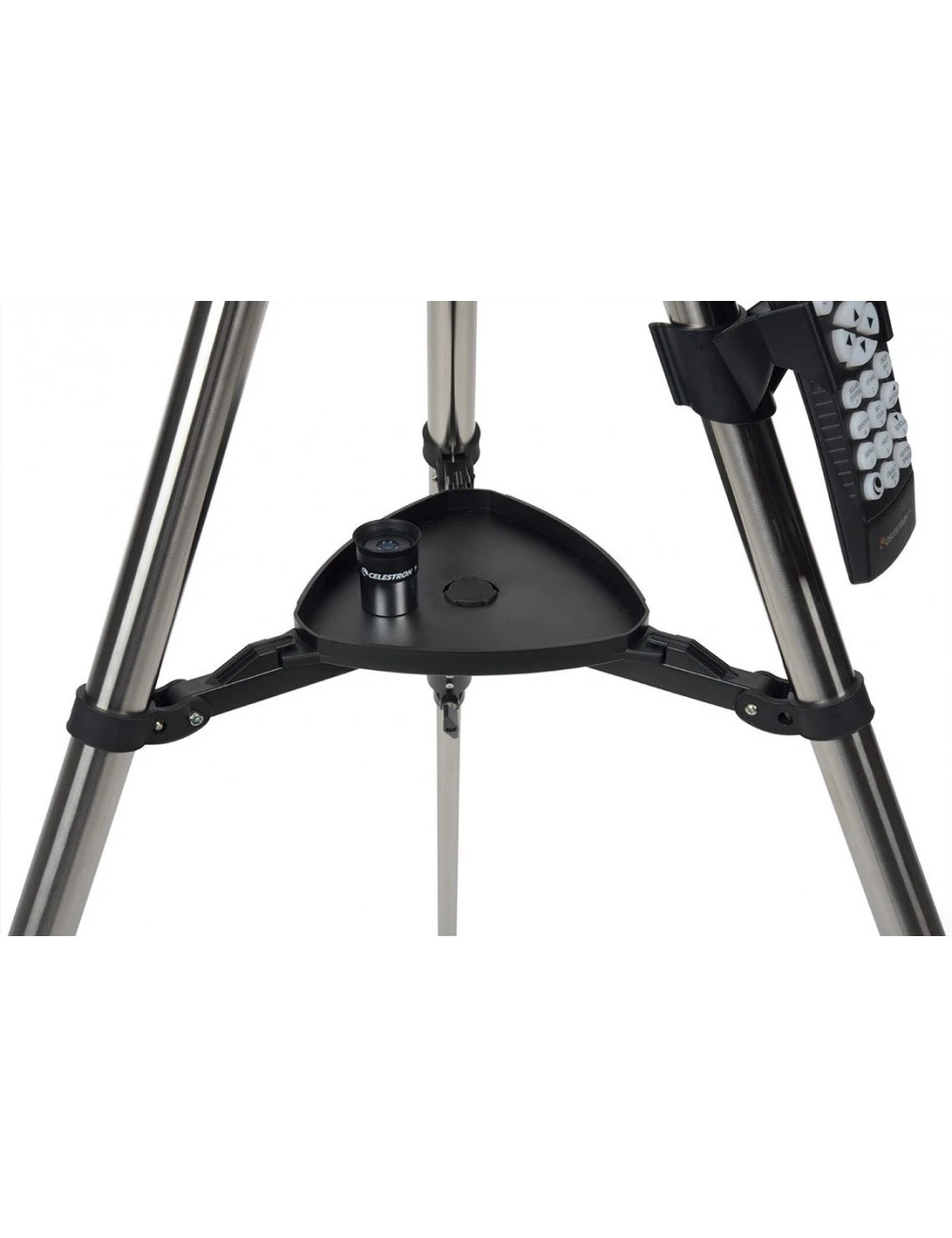 Oculaires 25 mm (50x) et 9 mm (139x) coulant 31.75 mm – Renvoi coudé – Porte-oculaire 31.75/50.8 mm (avec bague intermédiaire fournie) – Chercheur Starpointeur – Trépied – Tablette porte-accessoires – Logiciel d’astronomie The Sky Level 1(en anglais) – Logiciel de commande de l’instrument NSOL (en anglais) – Raquette de commande Nexstar avec sa base de données. – Notice