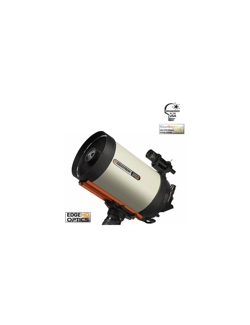 Nouveau design optique haut de gamme pour les Celestron Schmidt-Cassegrain. L’instrument intègre un correcteur de champ. Le champ plan obtenue est jusqu’à 3 fois plus grand que celui d’un Schmidt-Cassegrain classique, ce qui permet de magnifique clichés du ciel profond. Il dispose d’un blocage du miroir primaire pour l’astrophotographie et d’une ventilation du tube assurant une mise en température rapide et diminuant la turbulence instrumentale. Le Celestron EDGE HD dispose du système « Fastar » qui permet de monter une CCD à la place du secondaire au foyer primaire F/D 2. – Optique: Aplanatic Schmidt – Traitement: StarBright XLT – Diamètre: 279.4 mm – Focale: 2800 mm – Rapport F/D:10.02 – Chercheur 9×50 – Tube en Aluminum – Oculaire livré: 23 mm Ø 50,8mm (122x) – Renvoi coudé à 90° Ø 50,8mm – Obstruction du secondaire: Ø 95.25 mm (34.1 %) – Obstruction du secondaire (surface): 11.6 % – Longueur du tube: 609.5 mm – Masse: 12.7 kg – Platine queue d’aronde CGE