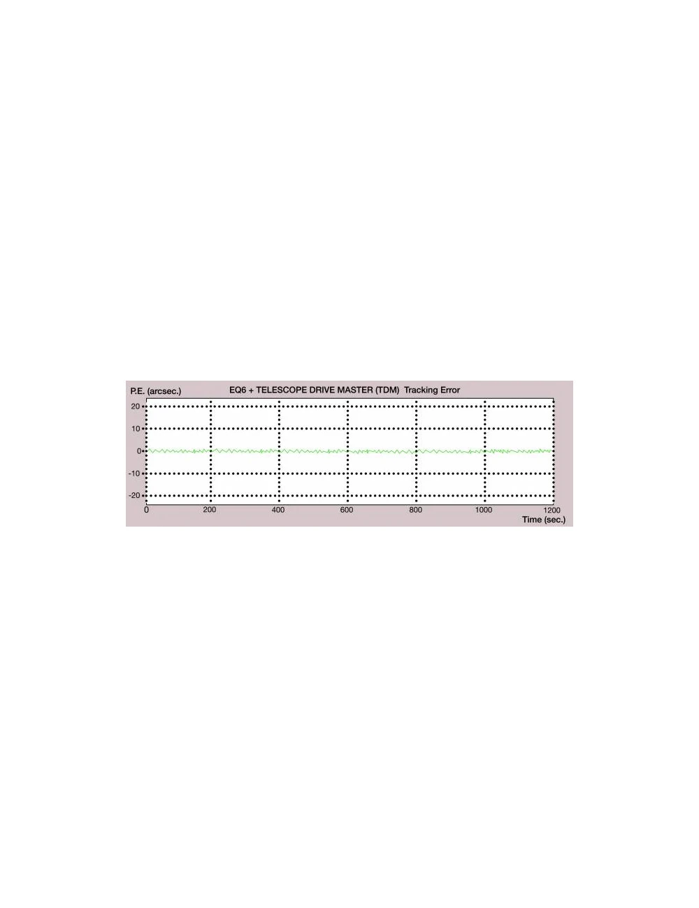 - Élimine l’erreur de suivi de la monture à des valeurs pratiquement négligeables. L’objet suivi dévie en règle générale (durant 95% du temps de pose) de sa position théorique sur la surface du CCD à un degré inférieur à ± 0,5’’ (cela correspond à une valeur absolue de 1’’) pour un temps de pose de 5-10 minutes. (La donnée décrite dépend de la position de l’objet observé dans le ciel, du type de monture utilisée et de la précision de l’alignement polaire.)