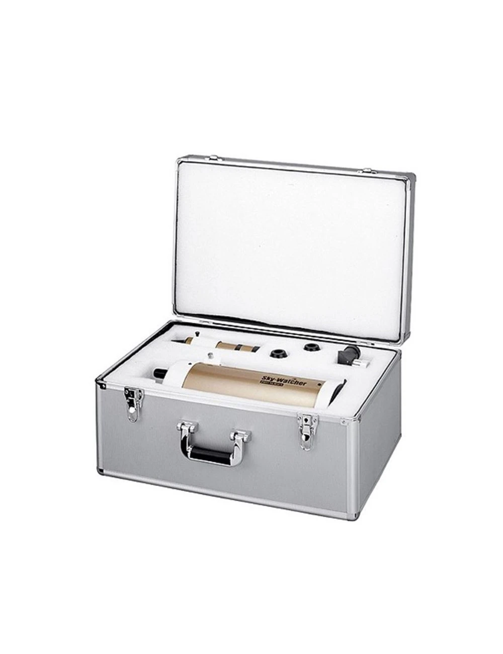 Fabriquée en aluminium et pourvue d’un calage en polypropylène blanc, cette valise offre une bonne et efficace protection à votre télescope Sky-Watcher Maksutov 150mm (SkyMax 150 PRO). Des emplacements sont également prévus pour ranger par exemple le chercheur, le renvoi-coudé ou d’autres accessoires.